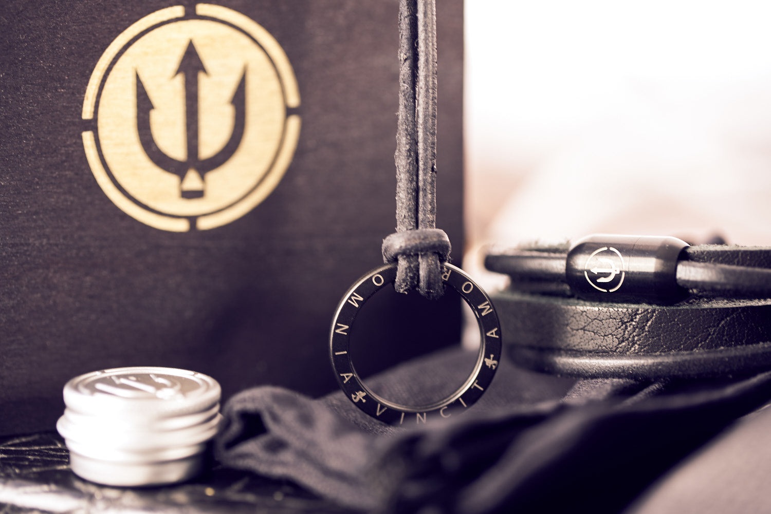 NEPTN NECKLACE AMR HANDMADE FROM LEATHER WITH ENGRAVED KEYRING