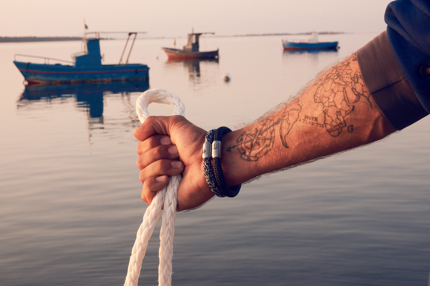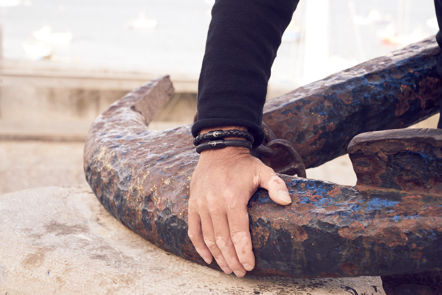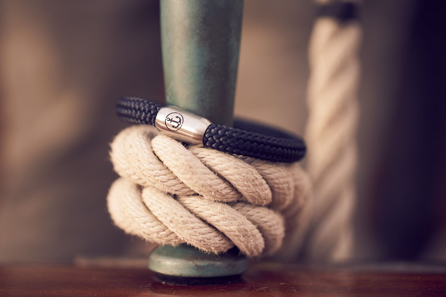 Materiali utilizzati: Corda da vela dall'Olanda o pelle bovina italiana & chiusura magnetica in acciaio inossidabile con incisione marittima